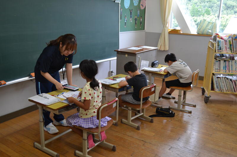主に小学部のクラスで過ごし、授業の様子を見たり、指導支援をしたりしました。放課後には子どもたちと一緒に遊ぶなど黒岩小中学校の様子を知ることができ、教員志望の気持ちがさらに高まったようでした。また、子どもたちは大学生のお兄さん、お姉さんとふれあうことができ、とても喜んでいました。