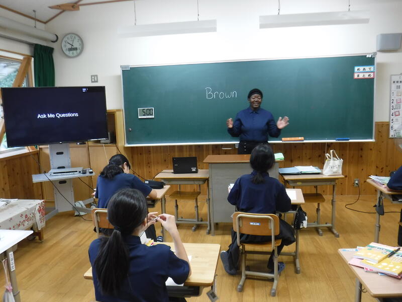 前任のアリーサ先生に続いて、アメリカ出身のベル先生が黒岩小中学校の子どもたちに英語を教えてくださることになりました。本日は、ベル先生に質問をしてベル先生の好きなスポーツや食べ物、趣味などを知る活動と自分たちのことを伝える活動をしました。子どもたちは新しい先生に興味津々で、いろいろなことを知ることができました。