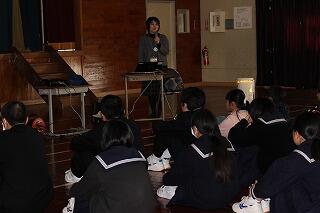 小学部5・6年、中学部全校を対象に携帯電話安全使用教室を実施しました。講師は、県消費生活センターの消費生活啓発員でした。ワンクリック詐欺、出会い系サイトの危険について詳しく説明していただきました。
