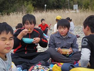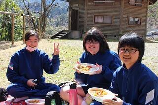 小学部のお別れ遠足が大野川原でありました。食事は、飯盒炊さんでご飯を炊き、カレーをつくりました。