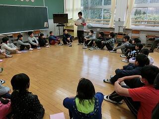 3年から6年までの合同でサッカーを楽しみました。各学年ともに少人数なので合同での体育は楽しみです。