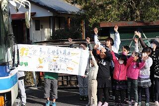 中学部は、祝子川キャンプ場で送別遠足を行いました。交通手段は、路線バスを利用しました。路線バスに乗るときには、小学部児童が、バスの乗り方の学習も兼ねて、見送りに来ていました。
