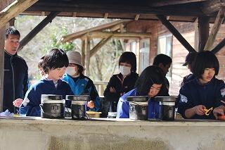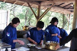 飯盒炊さんでご飯を炊き、カレーを協力して作りました。