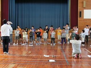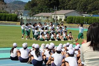 県立高校の陸上専門の先生から陸上競技について学んだ後だったのでその成果が出せたと思います。昼には延岡商業高校の生徒による集団行動の演技がありました。子どもたちも良い刺激を受けていました。