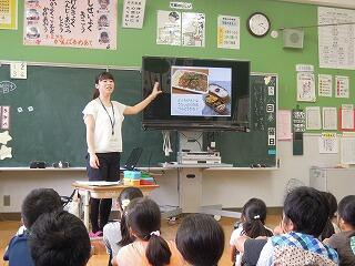 本校の給食は、近隣の小学校で作られ運ばれてきます。給食を担当していただいている栄養教諭の先生から食育指導がありました。内容は「お弁当の作り方」でした。子どもたちは、熱心に聞き、次の「お弁当の日(10月25日)」の参考にしたいと感想を話していました。」