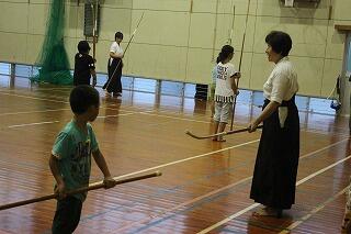 放課後子ども教室で講師の先生を招き、なぎなた教室を実施しました。