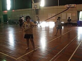 今年は、7名の子どもたちが習っています。どの子も、長いなぎなたの扱いに苦労しながらも、一生懸命に練習しています。「やあっ!」「とおっ!」と気合いの入った声が聞こえると、頼もしく感じてきます。