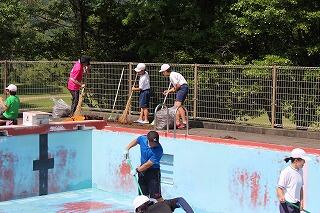 水泳の授業を前にプール清掃を小学部・中学部合同で行いました。小学部の児童は、プールの外や更衣室、プールの周辺をきれいにしました。中学部の生徒は、プールの中を協力してきれいにしました。プール開きが待ち遠しいですね。