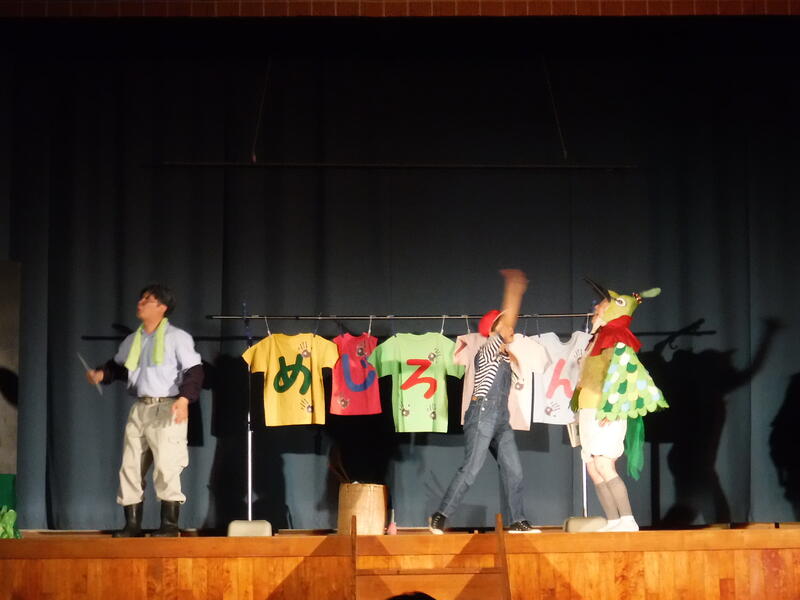 15日(金)の鑑賞教室では、劇団「ユニットあんてな」による劇「めじろんくん」がありました。子どもたちは、役者さんの声の出し方や表情などに魅了され、集中して鑑賞していました。中学生にとっては、くろいわ祭の劇での演じ方のよいお手本になっていました。