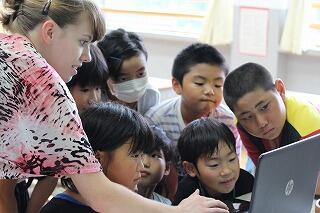 楽しい外国語活動の時間です。食べ物で何が好きですか?美味しいですか?・・・。ALTの先生との楽しい授業でした。