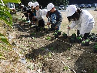 植えた苗は、寒い冬を乗り越えて、春にはきれいな花を咲かせてくれることでしょう。子どもたちも花たちに負けないように、寒い冬を元気に乗り切ってほしいです。