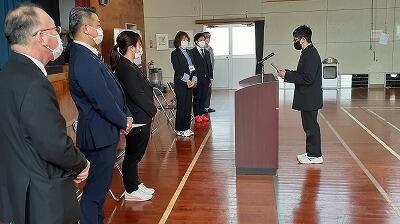 本日、新任式・始業式がありました。新しく赴任した職員6名の紹介があり、歓迎のことばを中学生が代表して述べてくれました。
