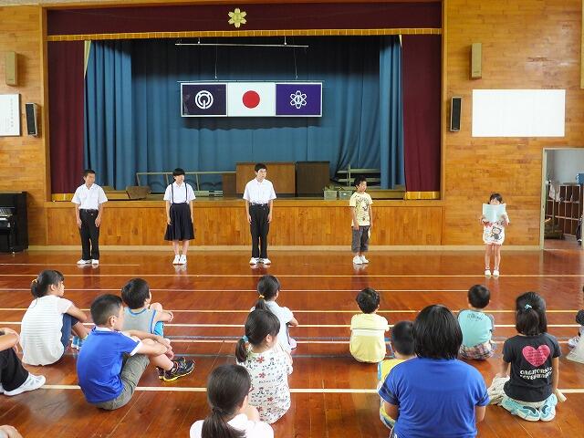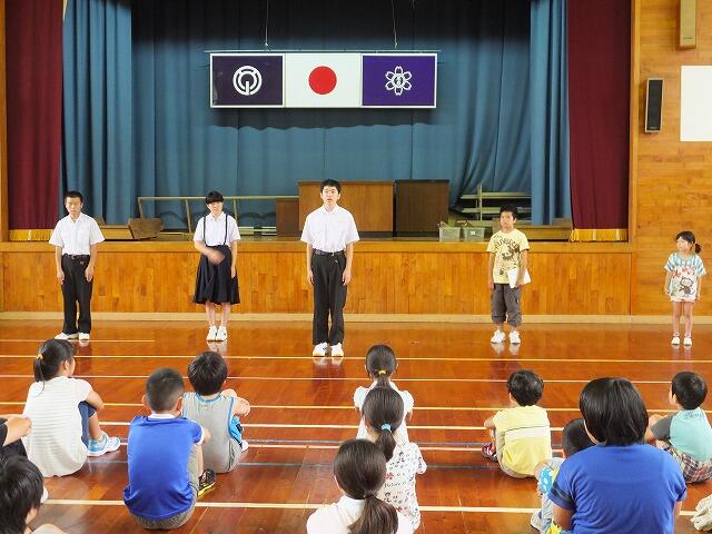 終業式では、1学期を振り返って、児童生徒が作文を発表しました。