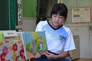 7月22日(月)の昼休みは中学生による小学生への2回目の読み聞かせでした。前回のメンバーとはまた違った様子で、上手な読み方は勿論、注意を引きつけてくれるよう工夫されていました。さすが3年生はひと味違いますね。今日も1年生は立派なデビューをはたしてくれました。