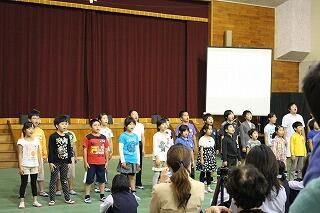 ▼音読発表「五十音」「天下古墳のカラス伝説」(小学部全員)