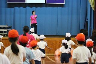 3校時に地域の方を講師に招き、児童生徒、保護者、教職員で体育大会の時に踊るダンスの練習を行いました。ダンスは、「365日の紙飛行機」「盆ダンス」です。