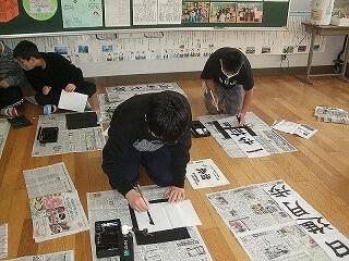 小学部の3~6年生は、書初めをしました。子どもたちは、今年の目標の「ことば」や「四字熟語」を書きました。りっぱな書初めができました。