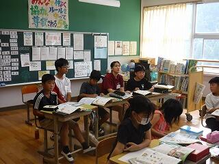 9月2日(月)黒岩小中学校の2学期がスタートしました。8月末は台風の襲来により県内外で甚大な被害が出ていましたね。皆さんのご家庭はいかがだったでしょうか?黒岩小中学校も避難所に指定されており、数軒のご家庭が避難されていました。2日、3日は大学生のインターンシップで11名の学生も訪れ、子どもたちとのふれあいもできました。テストのため中学生とは、ふれあう機会が少なかったのですが、ボランティアで駐車場に刈っていた草もきれいに片付けてくれました。