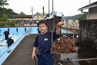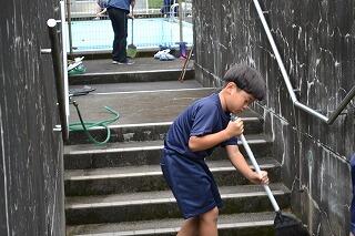 6月6日(木)雷の心配もありましたが、何とか予定通りプール清掃を行う事ができました。中学部からでないとプールの中の清掃はできないため、中学1年生の中にはこの清掃を楽しみにしていたとか・・・小学部もプール周りの清掃を一生懸命頑張りました。これから水をため、25日(火)のプール開きに向けて準備を進めていきます。