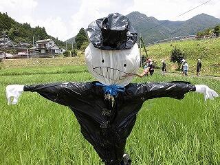 6月に田植えをした田んぼに「かかし」が登場しました。