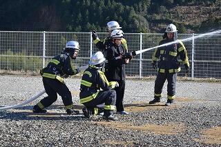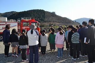 火災発生を想定した避難訓練を小学部・中学部で実施しました。避難訓練の後には、放水訓練の体験や消防車の説明等をしていただきました。