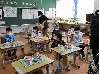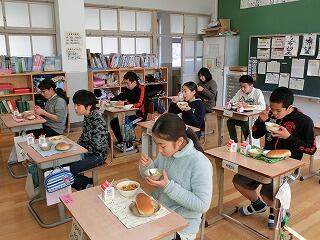 小学部・中学部ともにインフルエンザのピークは過ぎましたが、ランチルームでの給食をやめて、各学級で前を向いて食べています。また、休み時間には、お茶うがいを全員で行っています。
