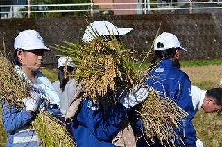 6月に田植えをして4か月。小中学生は毎年実施しているので、大きく成長した稲を慣れた手つきで刈り取っていきました。2時間ほどの活動でしたがとても貴重な体験となりました。