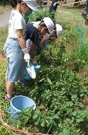 先日、3年生の子どもたちが2月ごろに植えたジャガイモの収穫をしました。植えたときは、1年生(現2年生)と一緒に植えました。予想以上にたくさん収穫できました。自分たちの分を取ったら、他の学年の人たちにもあげました。