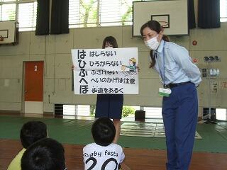 もうすぐ夏休みです。自転車に乗る機会や歩いて遊びに行くことも増えることと思います。今回の交通安全教室で学んだことを生かして、安全な日常生活を送ってほしいと思います。
