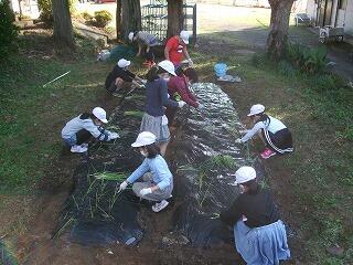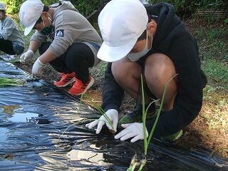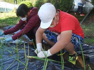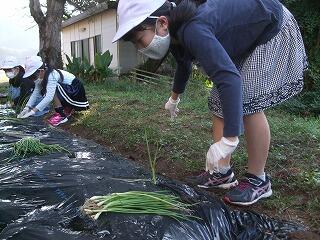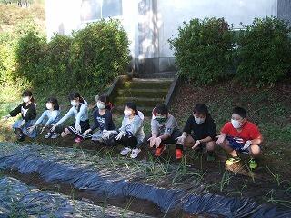 3・4年生がタマネギの苗の植え付けをしました。3年生は社会科で、延岡市の「空飛ぶ新玉ねぎ」について学習します。その関係で、3年生が例年、タマネギ栽培をしています。今年は、4年生も一緒にタマネギ栽培をします。