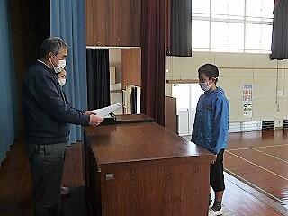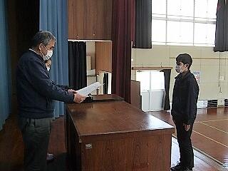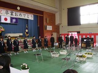 式では、皆しっかりと卒業証書を受け取りました。また、「別れのことば」では、卒業生、在校生ともに、心のこもった温かい言葉を伝え合いました。歌は、少人数ながら精一杯声を出し、気持ちのこもった歌を歌いあげていました。