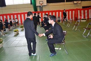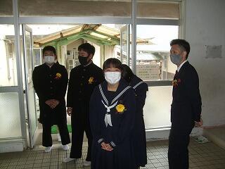 5名の卒業生が、この黒岩中学校を巣立っていきました。これからは、5人がそれぞれの進路に向かって進んでいきます。黒岩小中学校で学んだこと、思い出を大切にし、大いなる未来に向かって羽ばたいてほしいと思います。