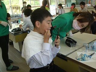 学校歯科医の「杉本先生」が来られ、歯みがき指導をしていただきました。児童生徒は、歯みがきの大切さを改めて感じることのできた学習でした。