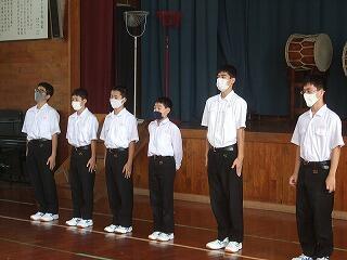 12日・13日に、中体連の地区大会がありました。それに向けて、推戴式を行いました。3年生にとっては、最後の大会でした。お疲れ様でした。
