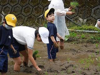 2年ぶりに田植えをしました。まだまだコロナが心配される中、できる範囲でできることを取り組んでいます。地域の方も、4名来ていただき、いろいろと教えていただきました。この後は、田んぼのお世話をしながら、稲刈り、餅つきと取り組んでいきたいと思います。