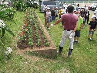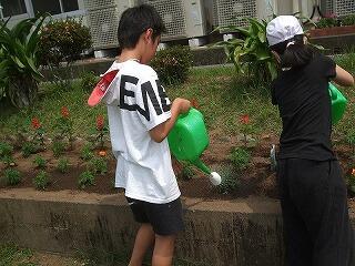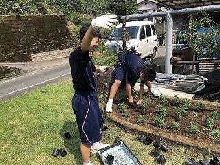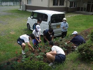 中学部は、校内の花壇と各地区にある花壇に花の苗を植えました。