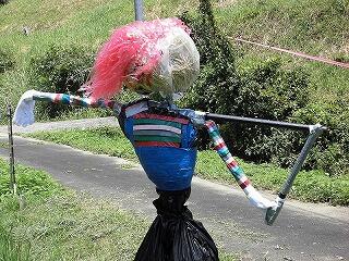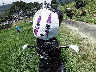 このかかしは、5・6年生が作成しました。3つの班に分かれて、作成しました。それぞれ上手にできあがっています。田んぼに立ててありますので、ぜひご覧になられてください。