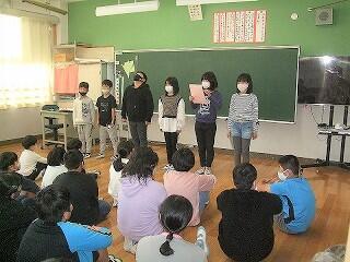 3・4年生は、「群読発表」と「折り紙でのサンタクロースづくり」をしてくれました。5・6年生は、「お米作り学習」についての発表をしてくれました。