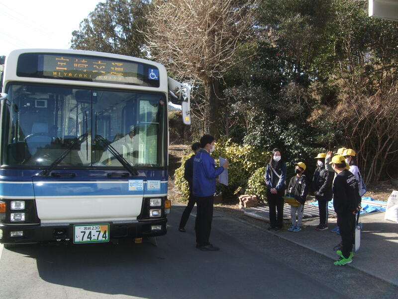 3・4年生は「バスの乗り方教室」をしました。バスについての説明を聞いた後、消防署の見学に行きました。