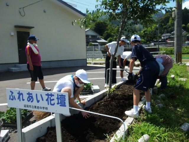 6月22日に、中学生が手分けして、校区内各地区の「ふれあい花壇」に花の苗を植えました。