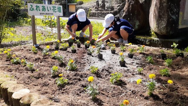 6月22日に、中学生が手分けして、校区内各地区の「ふれあい花壇」に花の苗を植えました。
