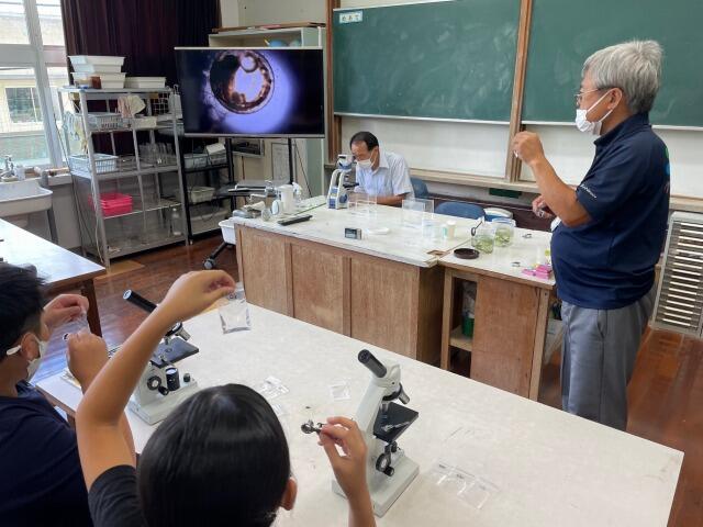 6月28日に、県教育研修センターより2名のサイエンスアドバイザーの先生をお招きして、メダカの卵と成長についての学習をしました。