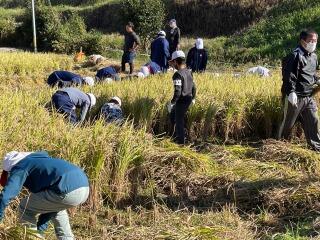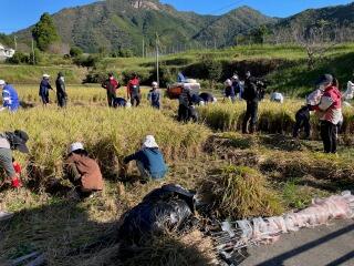 小・中学生ともに、実りと地域の方の協力への感謝の気持ちを言葉にしており、とても充実した活動でした。この後、収穫した米はもちつきなどに使用する予定です。