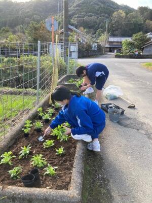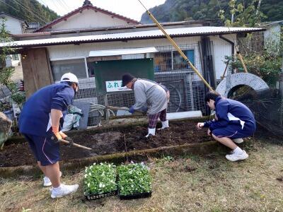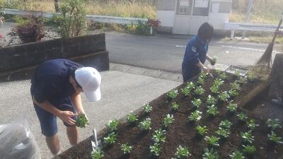 12月7日(水)に、中学部の生徒が手分けして、各地区のふれあい花壇にパンジー・ビオラの苗を植えました。