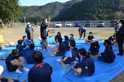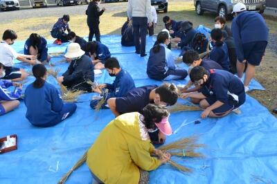 地域の方に手ほどきを受けながらなわをない、自分なりのしめ縄を作る姿はみな一生懸命で、なかなか立派なしめ縄に仕上げていました。きっと自分の作ったしめ縄を飾って、いいお正月を迎えることだと思います。