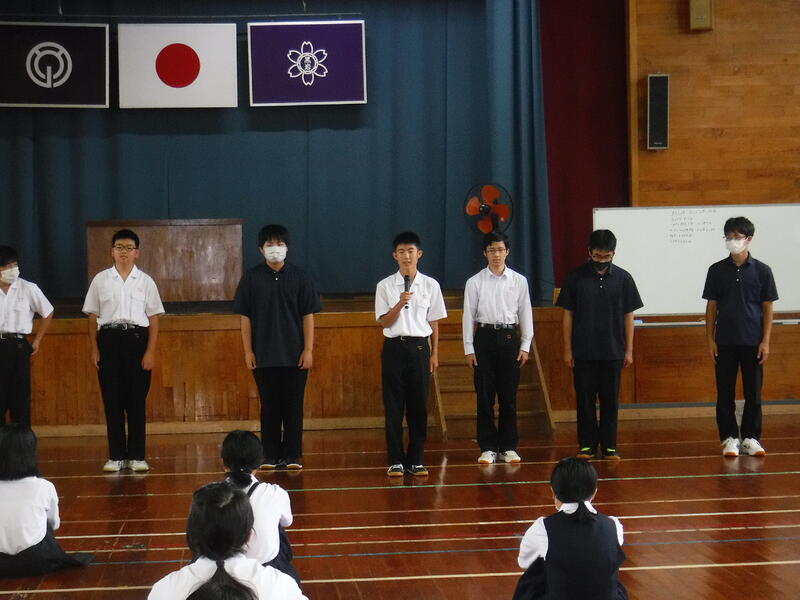 推戴式では、それぞれの大会に向けて、一人一人意気込みと目標をみんなの前で決意表明しました。3年生にとっては最後の大会になります。悔いのないように自分の力を精一杯出して切ってほしいと思います。