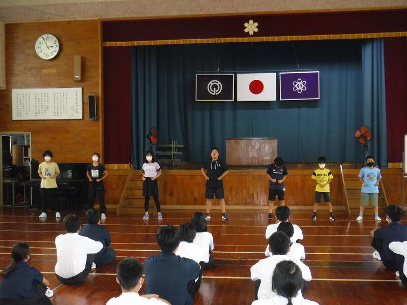 中学生が考えた王様ジャンケンと小学生が考えた王様ドッジボールをしました。どの遊びも小中学生のどちらも楽しめるもので、全員が笑顔で遊んでいました。中学生は小学生に手加減して投げてあげたり、小学生は中学生に進んでチャレンジしたりと小中一貫校のよさが感じられた活動になりました。