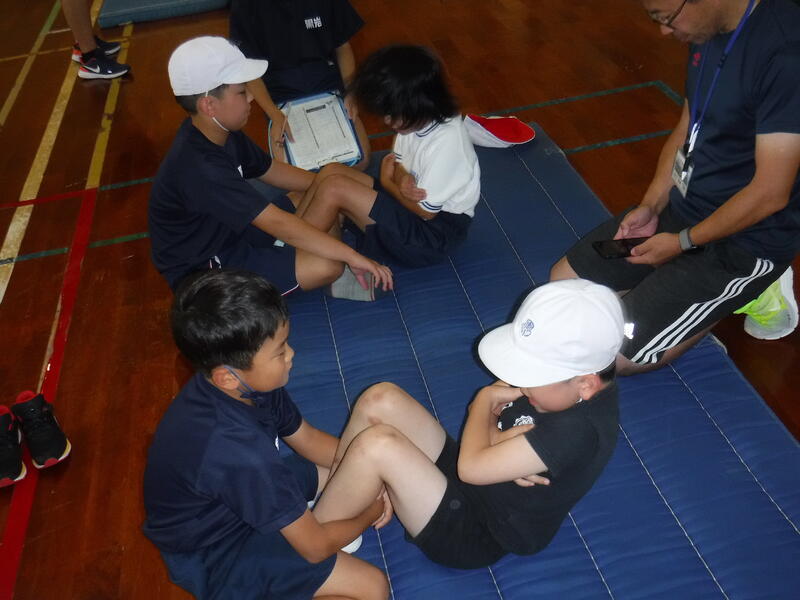 小学部では体力テストを行いました。反復横跳び(俊敏性)、上体起こし(腹筋)、立ち幅跳び(跳躍力)、握力、長座体前屈(柔軟性)、シャトルラン(持久力)の6種目について計測しました。この結果を受けて体力がどの程度伸びてきたか、これから1年間どの力を重点的に伸ばしていけばよいかの個人到達目標を設定していきます。