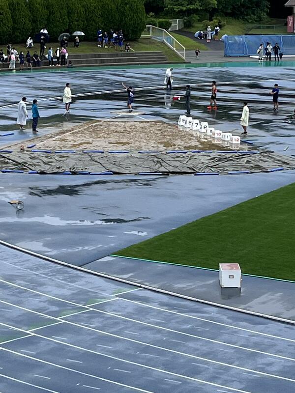 10日(土)と11日(日)は、西階陸上競技場で延岡地区、日向地区、西臼杵・東臼杵地区の陸上大会が行われました。黒岩中からは甲斐くんが砲丸投げで出場しました。結果は7m93cmで4位でした。惜しくも県大会出場は逃したものの、悪天候の中、本人にとって満足いく結果となり、心は晴れ晴れとしていました。