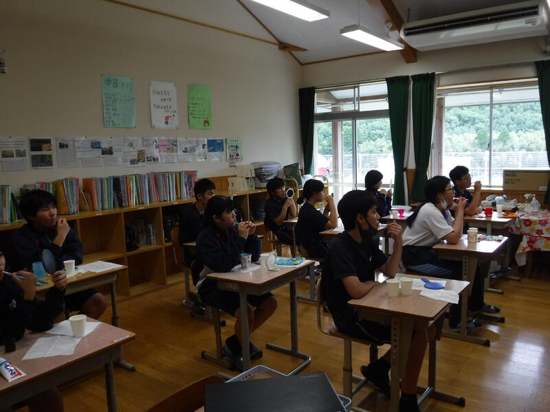 今週は歯の衛生週間で、小学部・中学部とも養護教諭の黒木先生から歯みがき指導を行ってもらっています。